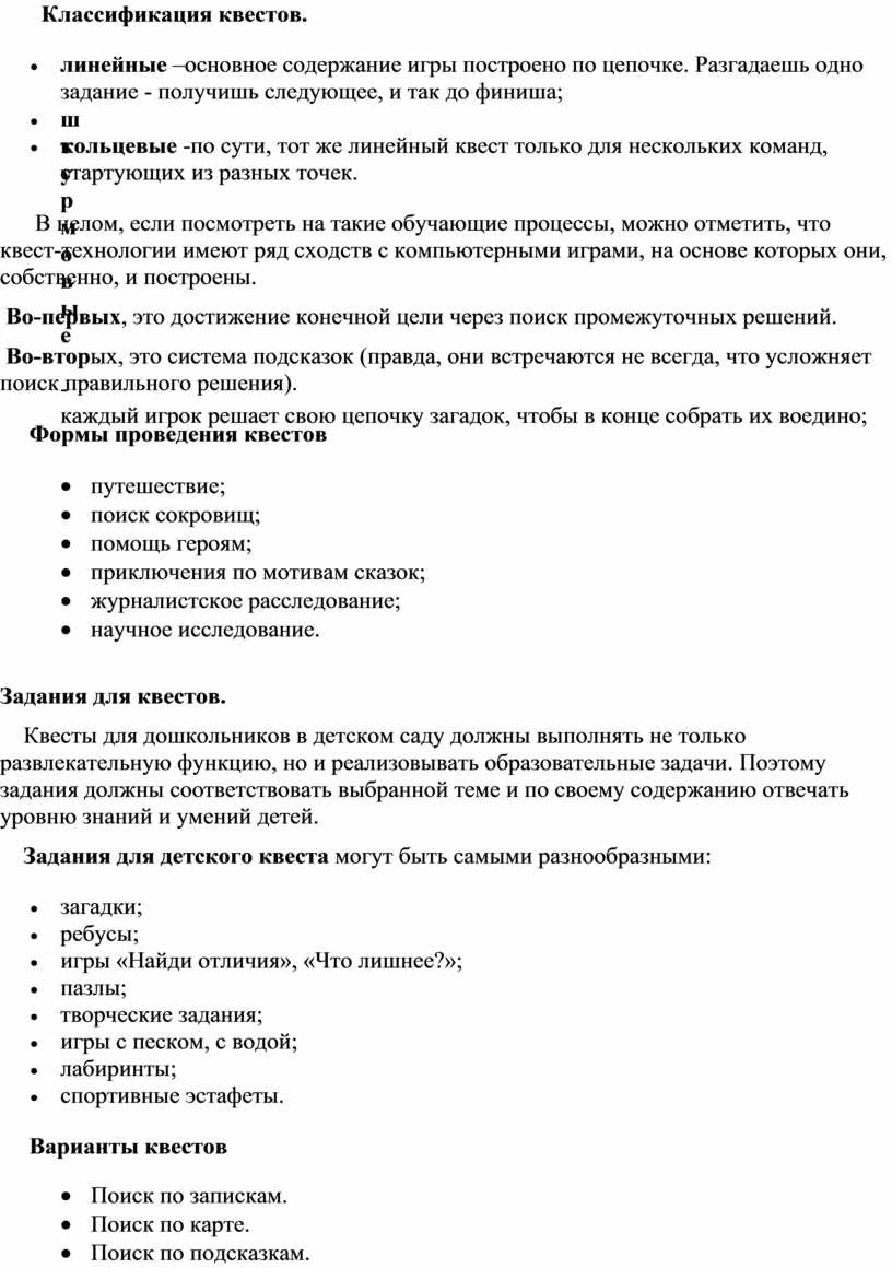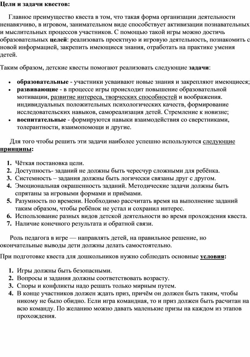 Главное преимущество квеста в том, что такая форма организации деятельности ненавязчиво, в игровом, занимательном виде способствует активизации познавательных и мыслительных процессов участников. С помощью такой игры можно достичь образовательных целей: реализовать проектную и игровую деятельность, познакомить с новой информацией, закрепить имеющиеся знания, отработать на практике умения детей.