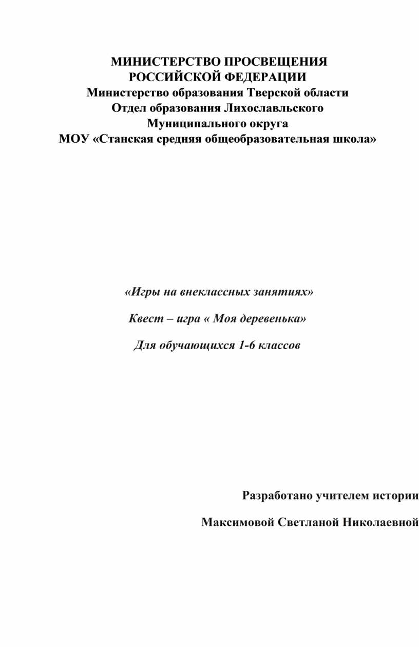 Квест – игра « Моя деревенька»