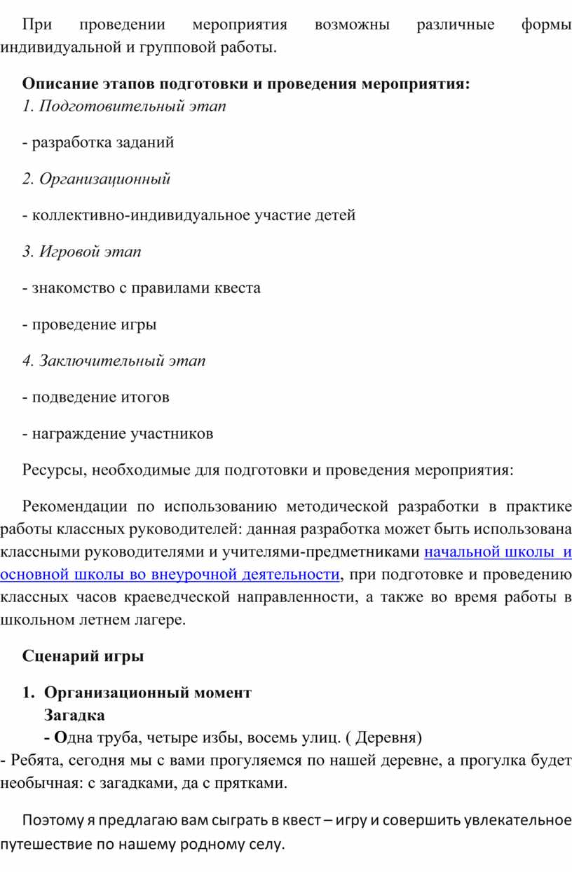 Рекомендации по использованию методической разработки в практике работы классных руководителей: данная разработка может быть использована классными руководителями и учителями-предметниками начальной школы и основной школы во внеурочной деятельности, при подготовке и проведению классных часов краеведческой направленности, а также во время работы в школьном летнем лагере.