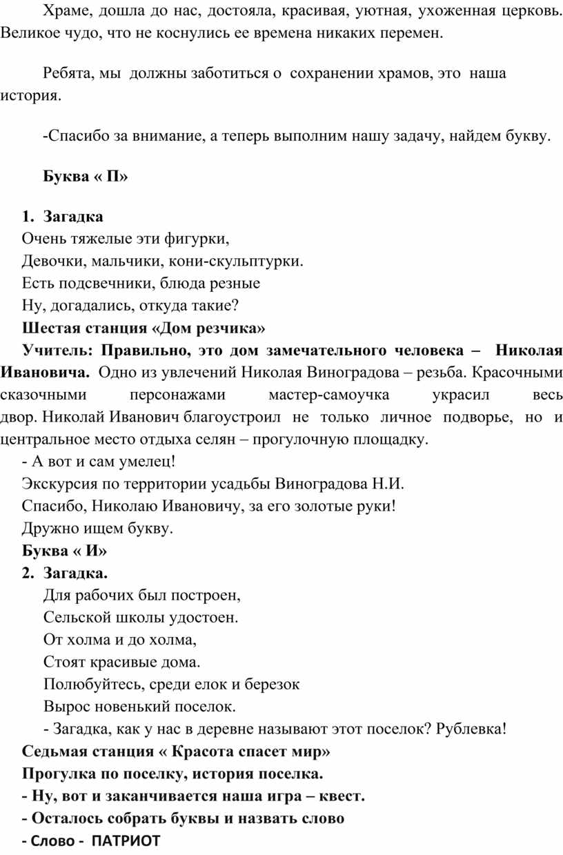 Поэтому я предлагаю вам сыграть в квест – игру и совершить увлекательное путешествие по нашему родному селу.