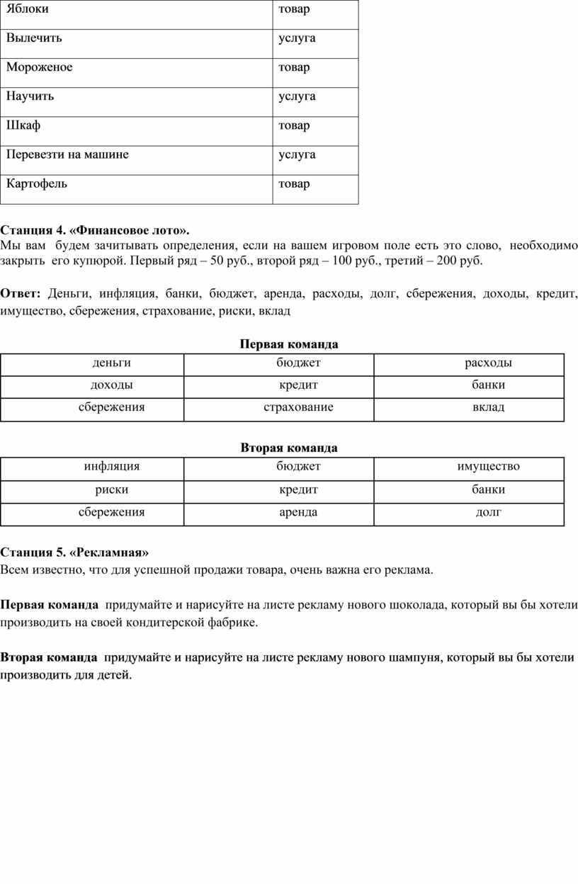 Станция 3. Игра «Товар или услуга»