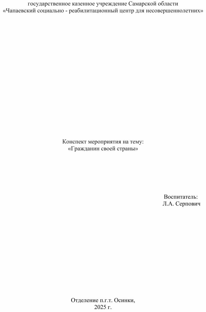 «Чапаевский социально - реабилитационный центр для несовершеннолетних»
