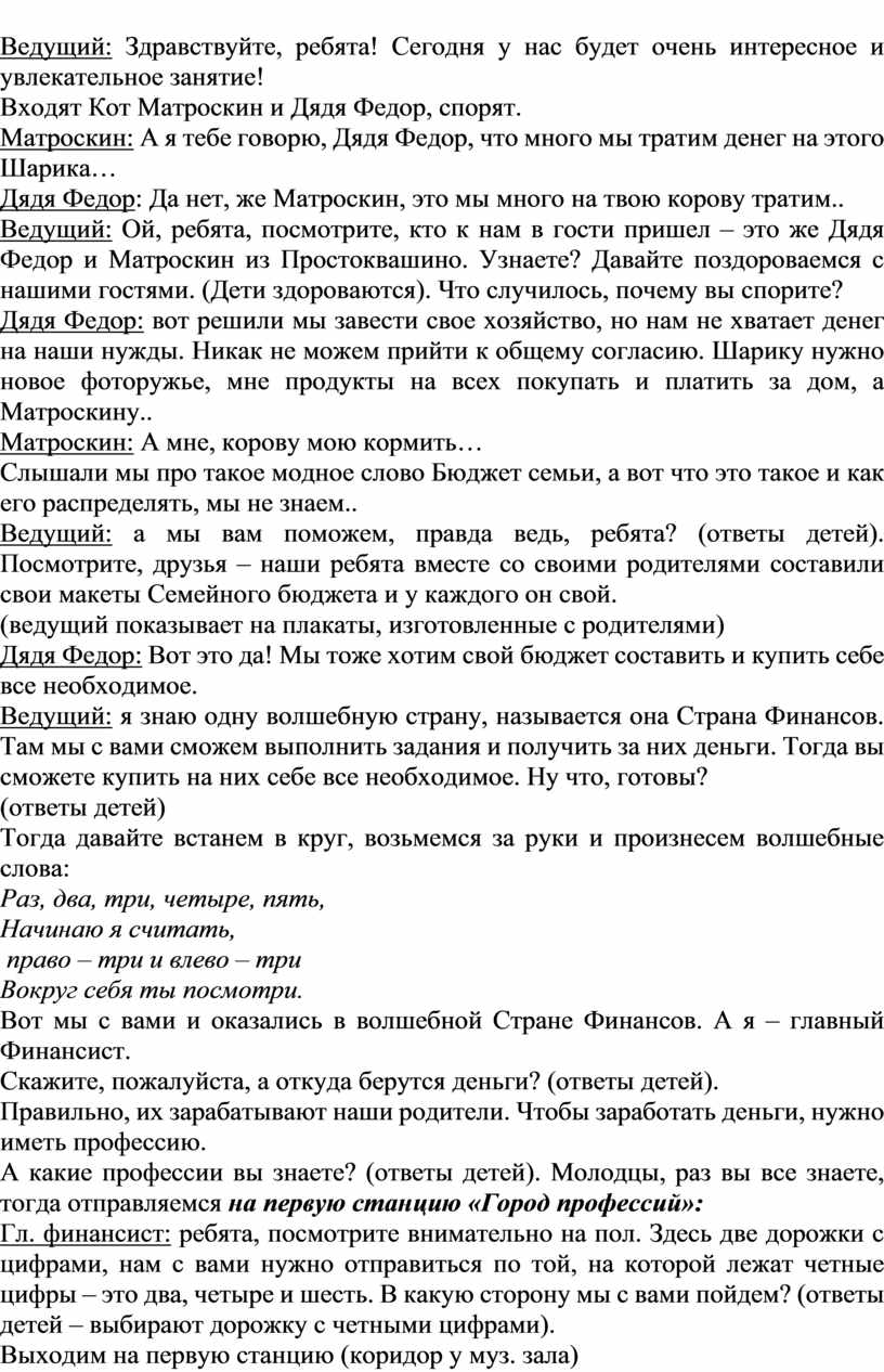 Гл. Финансист: не волнуйся, Матроскин, есть у меня еще одно задание для вас. Отправляемся на следующую станцию «Семейный бюджет».