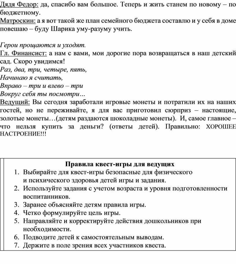 Гл. Финансист: ну, что же, ребята. Все молодцы, помогли Матроскину с Дядей Федором совершить покупки. Ну, что, помогли мы вам разобраться, что такое бюджет?