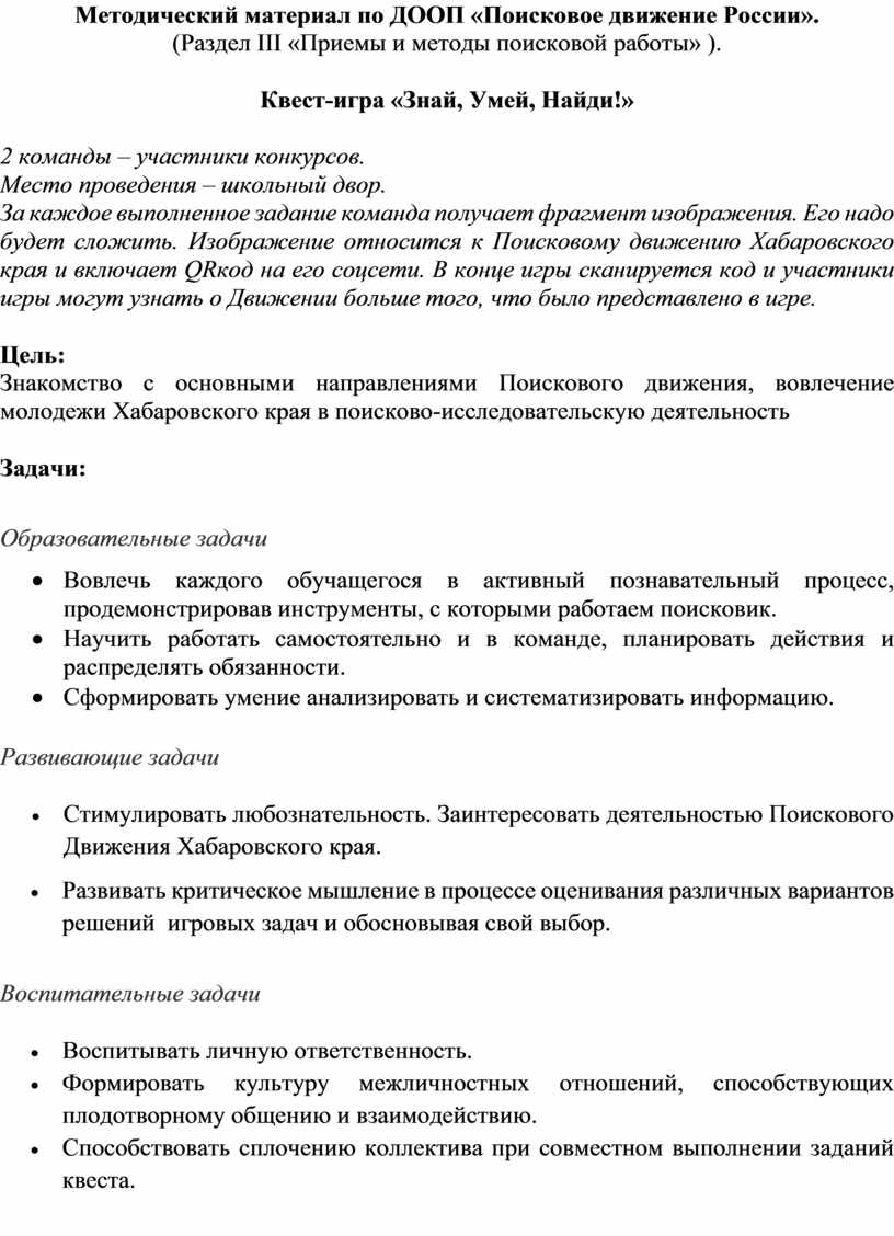 · Стимулировать любознательность. Заинтересовать деятельностью Поискового Движения Хабаровского края.