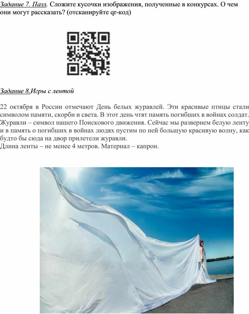 Задание 7. Пазл. Сложите кусочки изображения, полученные в конкурсах. О чем они могут рассказать? (отсканируйте qr-код)