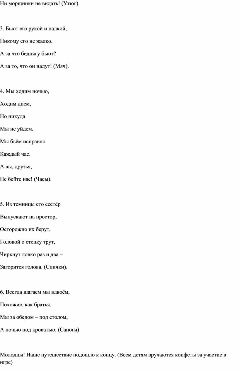 Молодцы! Наше путешествие подошло к концу. (Всем детям вручаются конфеты за участие в игре)