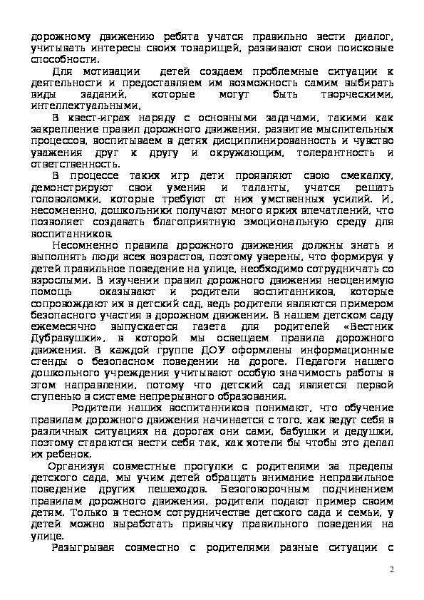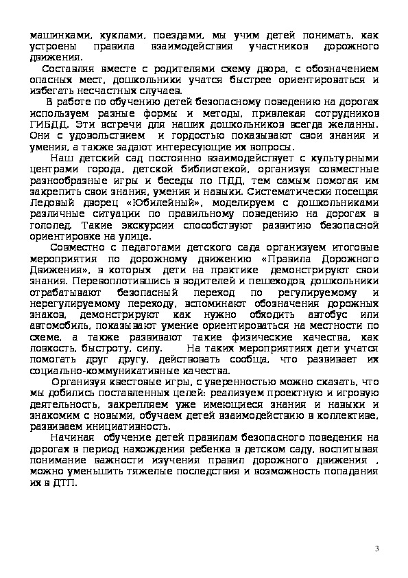 Очень часто участниками ДТП становятся дошкольники, которые играют вблизи дорог, игнорируют светофоры и пешеходные переходы, переходя улицу в неположенных местах. Обеспечение безопасности на дороге - очень важная задача, огромную роль в решении которой имеет организация работы по предупреждению детского дорожно - транспортного травматизма в дошкольных учреждениях. Формировать у детей навыки правильного поведения на дороге необходимо с самого раннего возраста, тогда эти знания будут наиболее прочными и впоследствии станут нормой поведения. Знакомя детей с правилами дорожного движения, мы ставим перед собой цель сформировать такие качества личности как внимание, ответственность, уверенность в себе и своих действиях.
