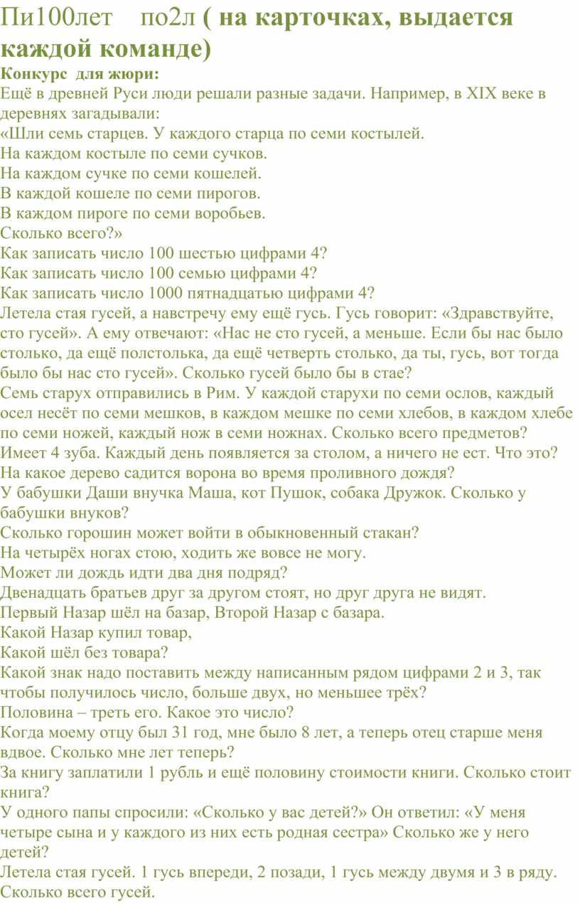 Задача 1. Тройка лошадей пробежала 120 км. Сколько километров пробежала каждая лошадь? (120 км)
