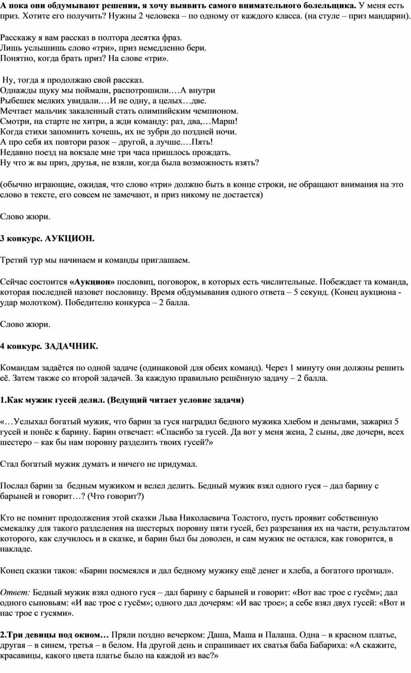 1.Как мужик гусей делил. (Ведущий читает условие задачи)