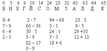 - Все справились с заданием, команда получает по 2 балла. - Капитана команд возьмите следующие задания, перед вами конкурс под названием «СОБЕРИ ПОСЛОВИЦУ» вам необходимо решить примеры и подставить их значение под нужную букву. Ответы записываем ниже. За задание вы получаете 2 балла. Время пошло!