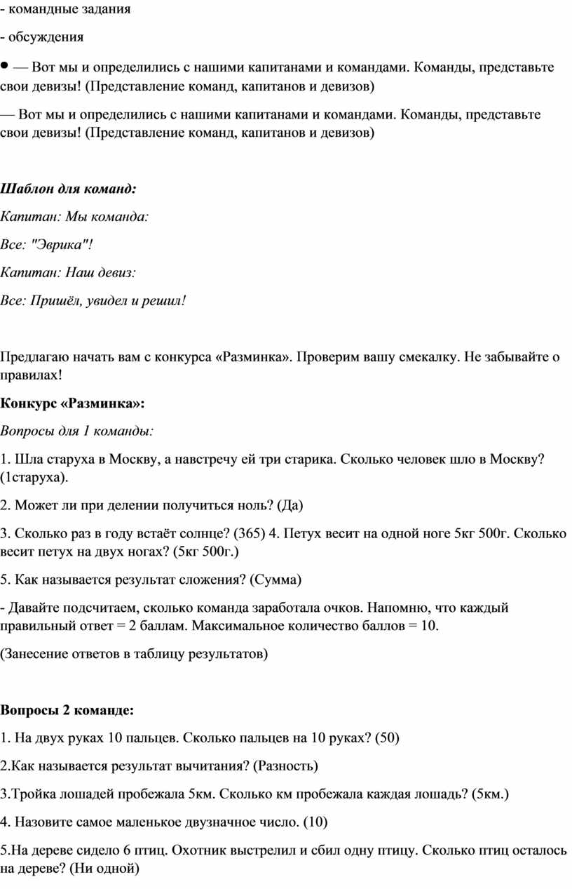 Шаблон для команд: Капитан: Мы команда: Все: "Эврика"! Капитан: Наш девиз: Все: Пришёл, увидел и решил!