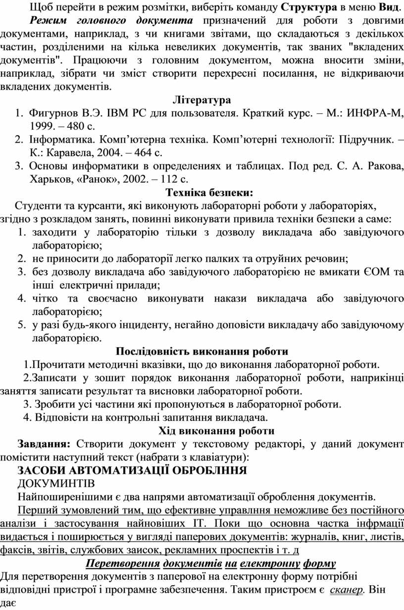 1. Методичні вказівки що до виконання лабораторної роботи;