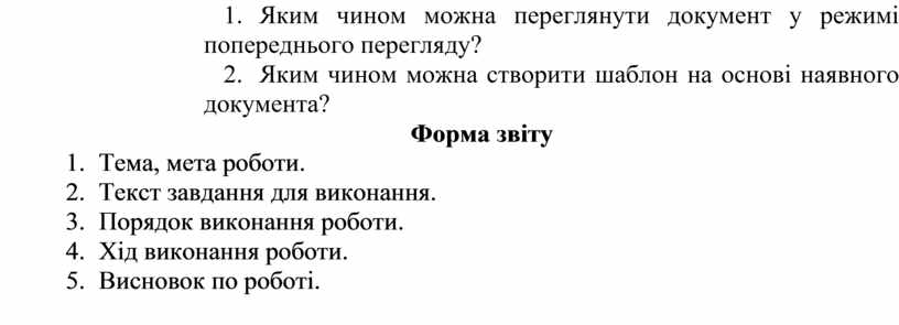 8. Яким чином можна переглянути документ у режимі попереднього перегляду?