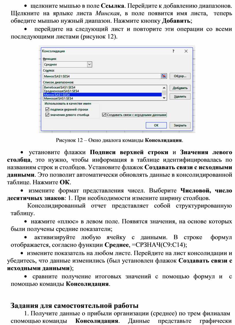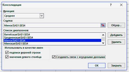 добавлению диапазонов. Щелкните на ярлыке листа Минская, в поле появится