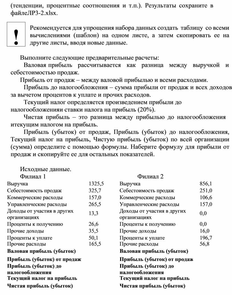 Материал для работы: файл-заготовка ЛР3-1.xlsx.