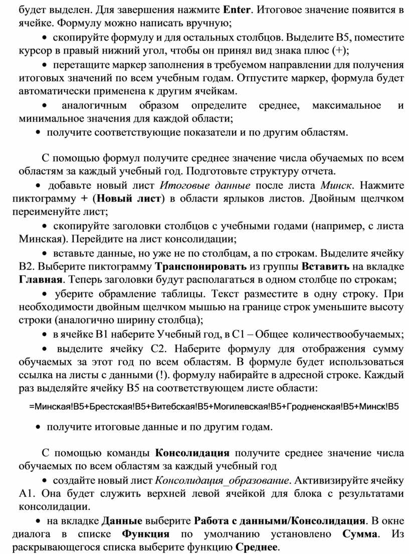итоговых значений с помощью формул и с помощью команды Консолидация.