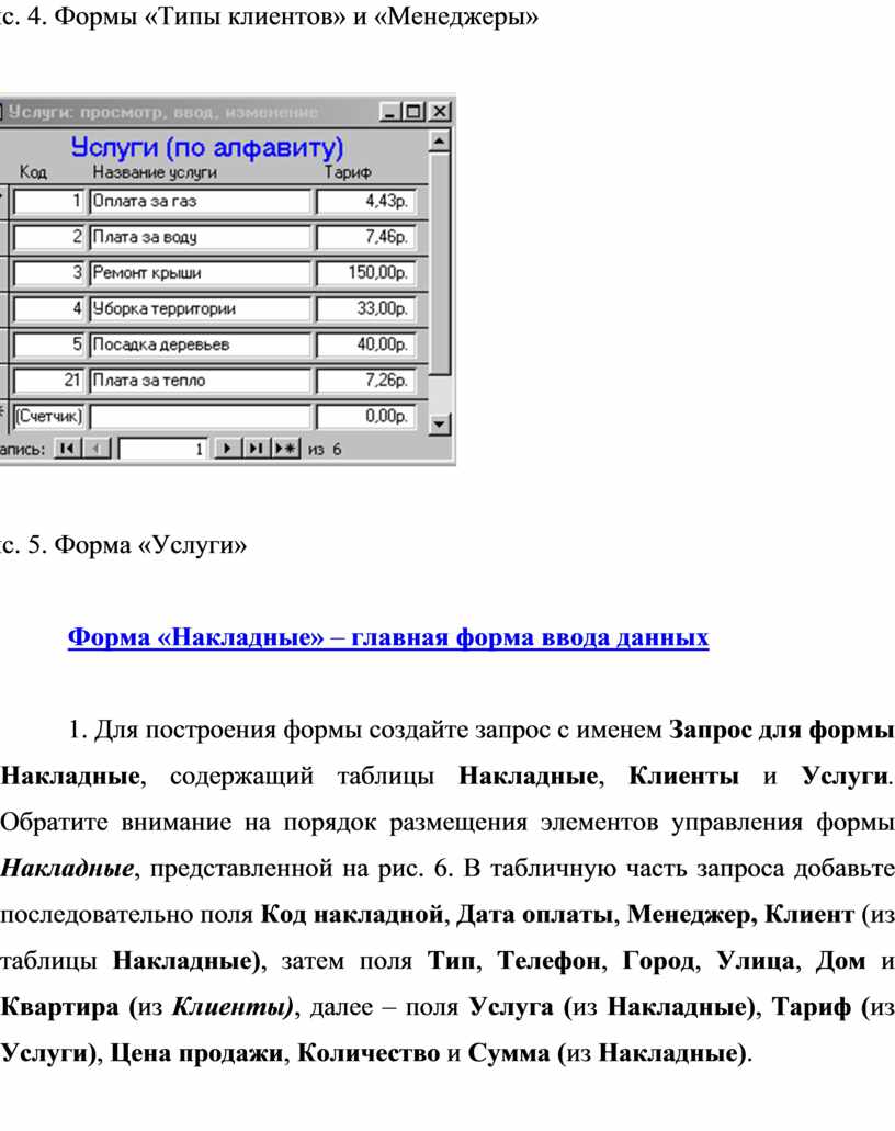 Проверьте работу формы Накладные совместно с формами Менеджеры, Клиенты и Услуги, которые должны закрываться автоматически при активизации формы Накладные. Добавленные в формах новые менеджеры, клиенты или услуги должны отражаться в списках формы Накладные.