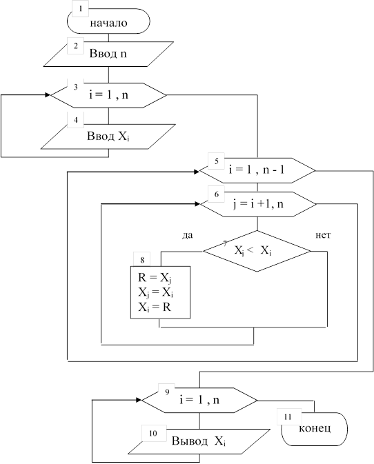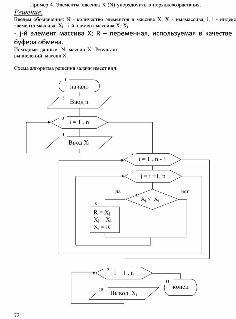 - j-й элемент массива Х; R – переменная, используемая в качестве буфера обмена.