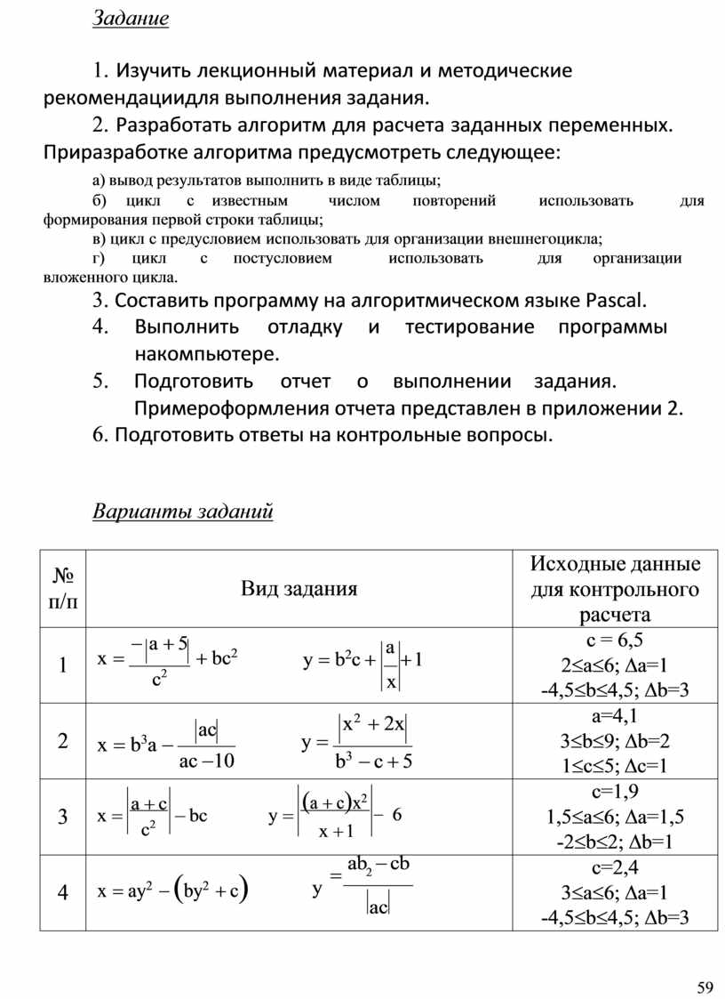 2. Разработать алгоритм для расчета заданных переменных. При разработке алгоритма предусмотреть следующее: