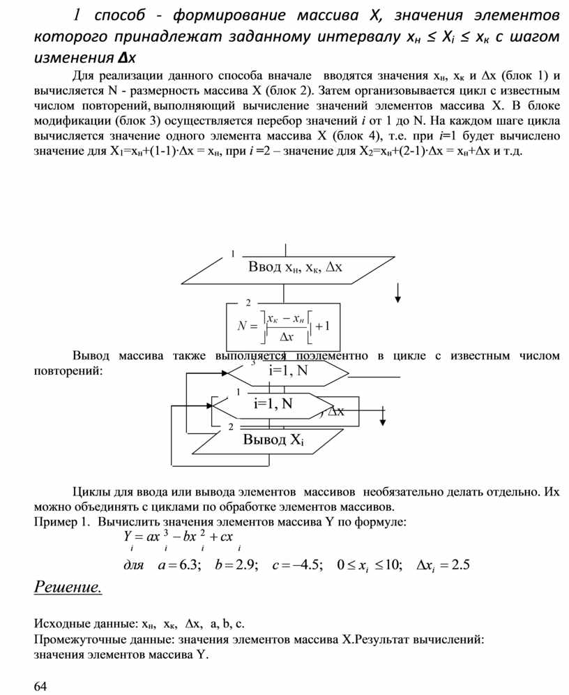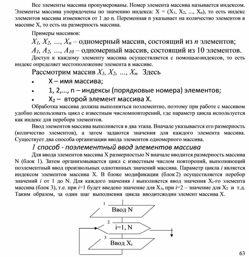 Введем обозначения: N - количество элементов в массиве Х; Х - имя массива; i, j - индекс элемента массива; Хi - i-й элемент массива Х; Хj