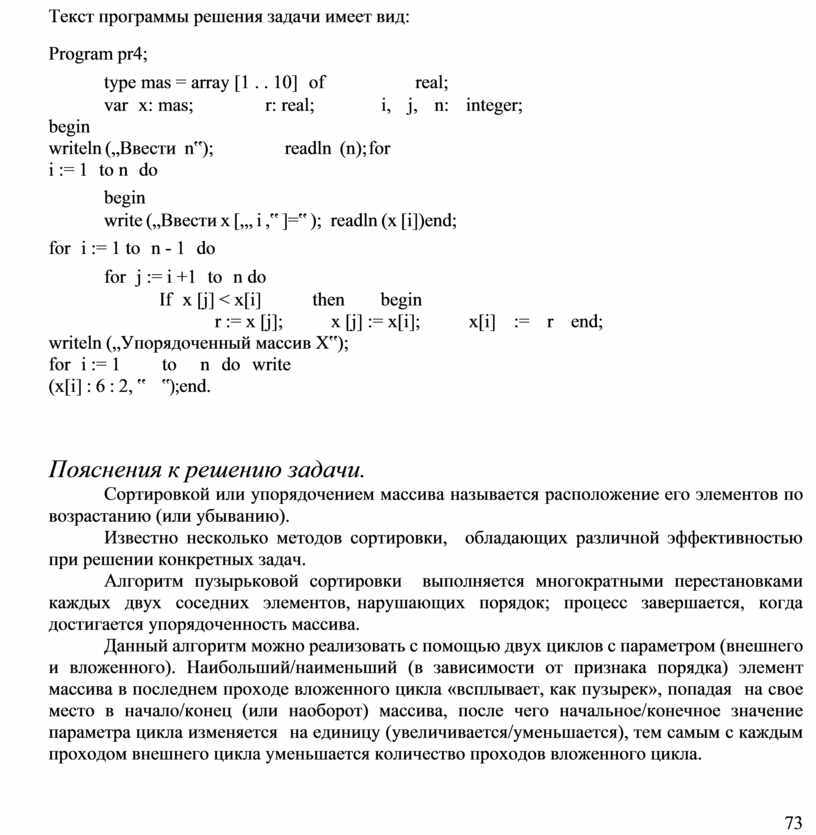 r := x [j]; x [j] := x[i]; x[i] := r end; writeln („Упорядоченный массив Х‟);