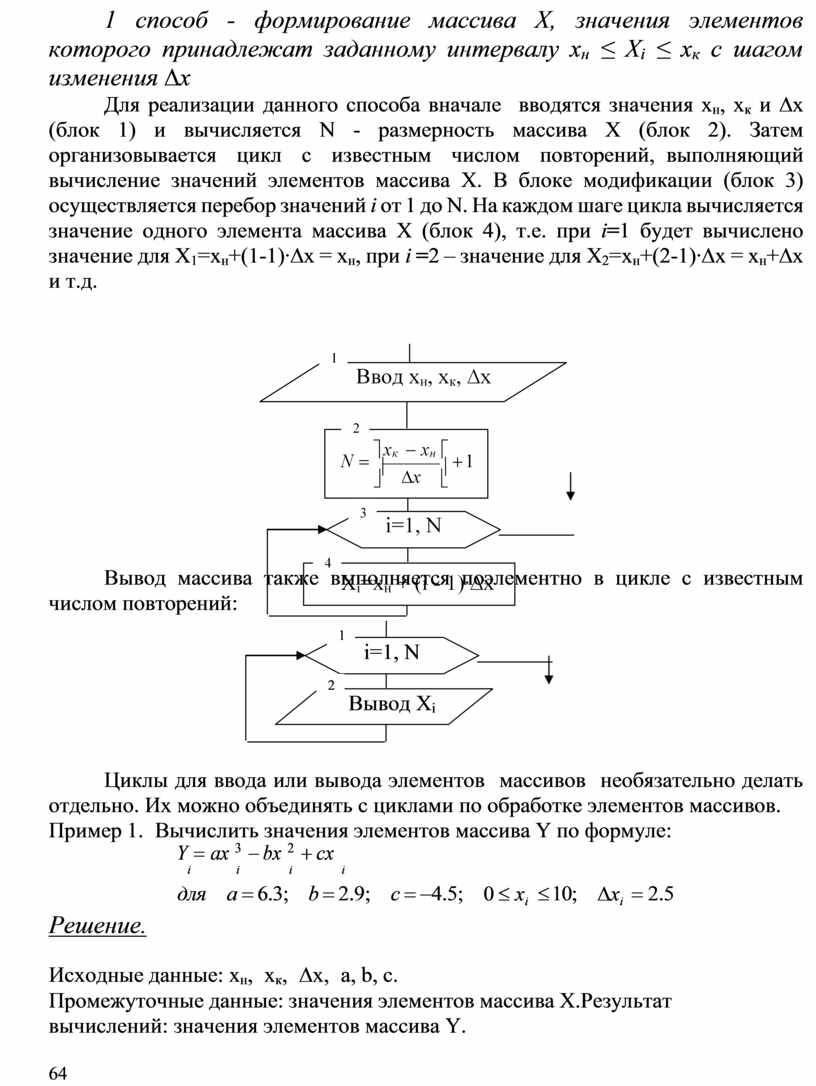 (блок 3) осуществляется перебор значений i от 1 до N. На каждом шаге цикла вычисляется значение одного элемента