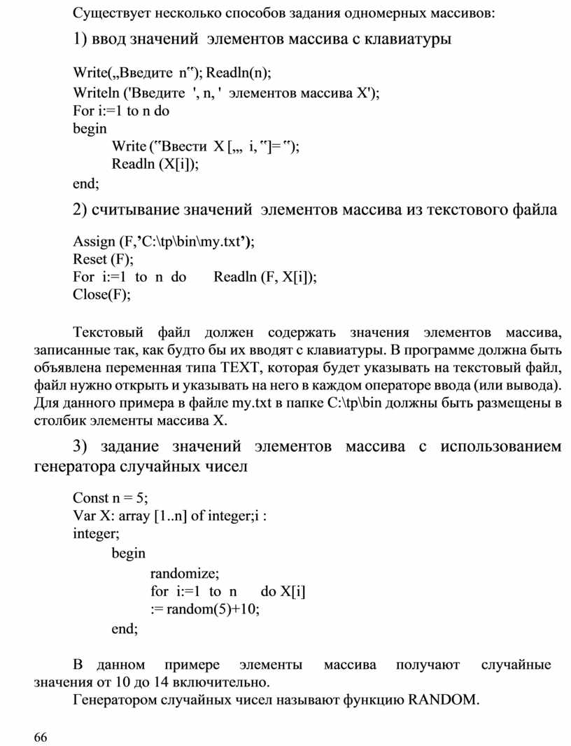 5. Какие существуют способы организации ввода элементов одномерного массива?
