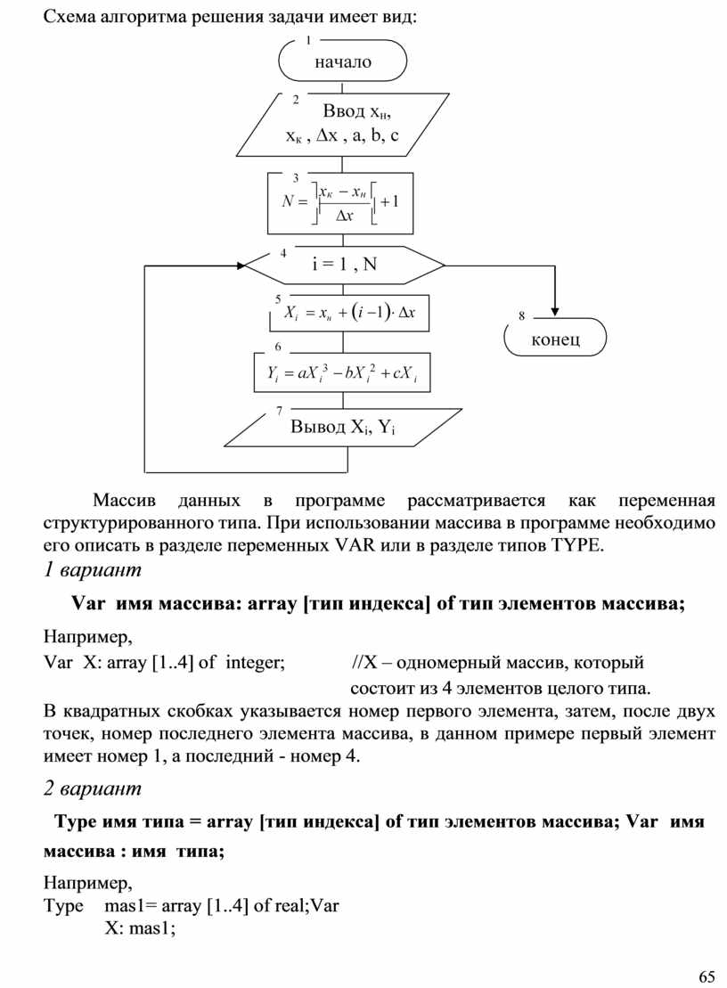 Массив данных в программе рассматривается как переменная структурированного типа. При использовании массива в программе необходимо его описать в разделе переменных VAR или в разделе типов TYPE.