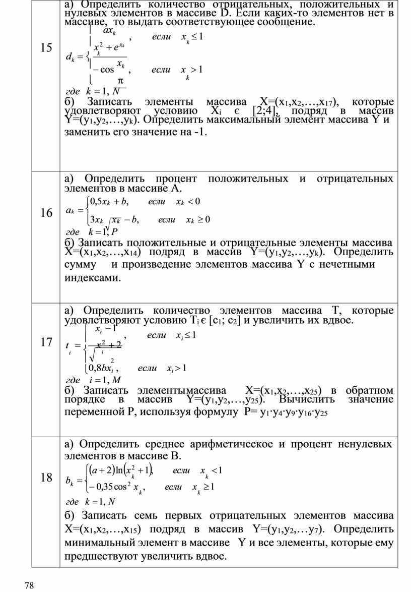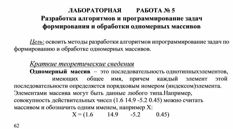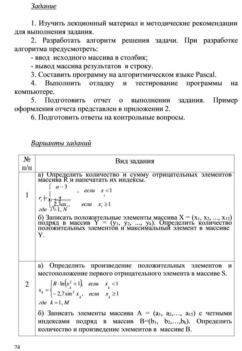 Разработка алгоритмов и программирование задач формирования и обработки одномерных массивов
