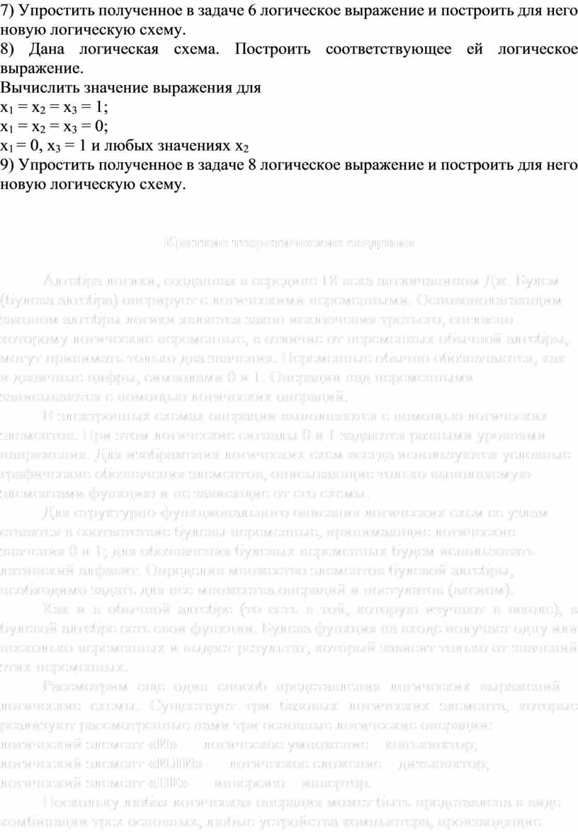 3) Выполните вычисления по логическим схемам. Запишите соответствующие логические выражения: