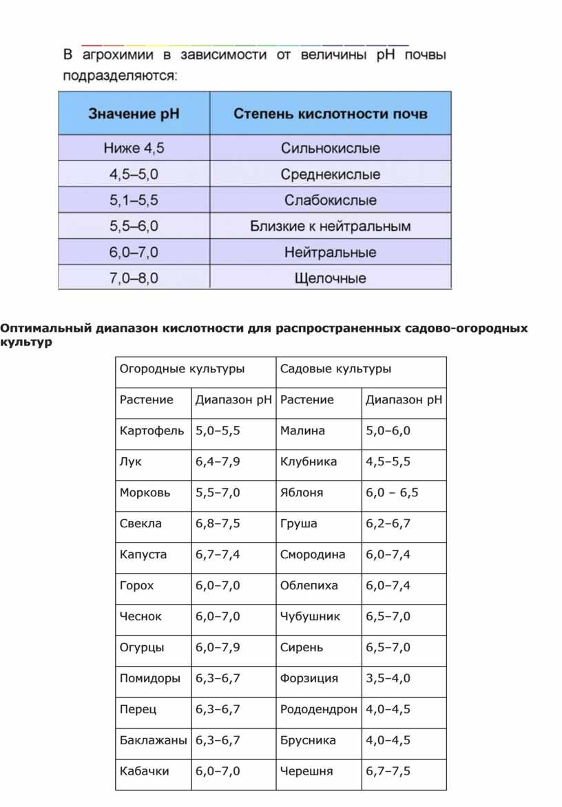 Оптимальный диапазон кислотности для распространенных садово-огородных культур