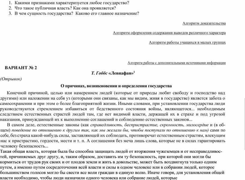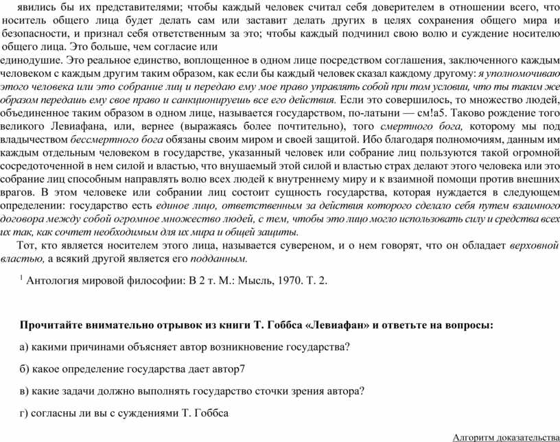 Прочитайте внимательно отрывок из книги Т. Гоббса «Левиафан» и ответьте на вопросы: