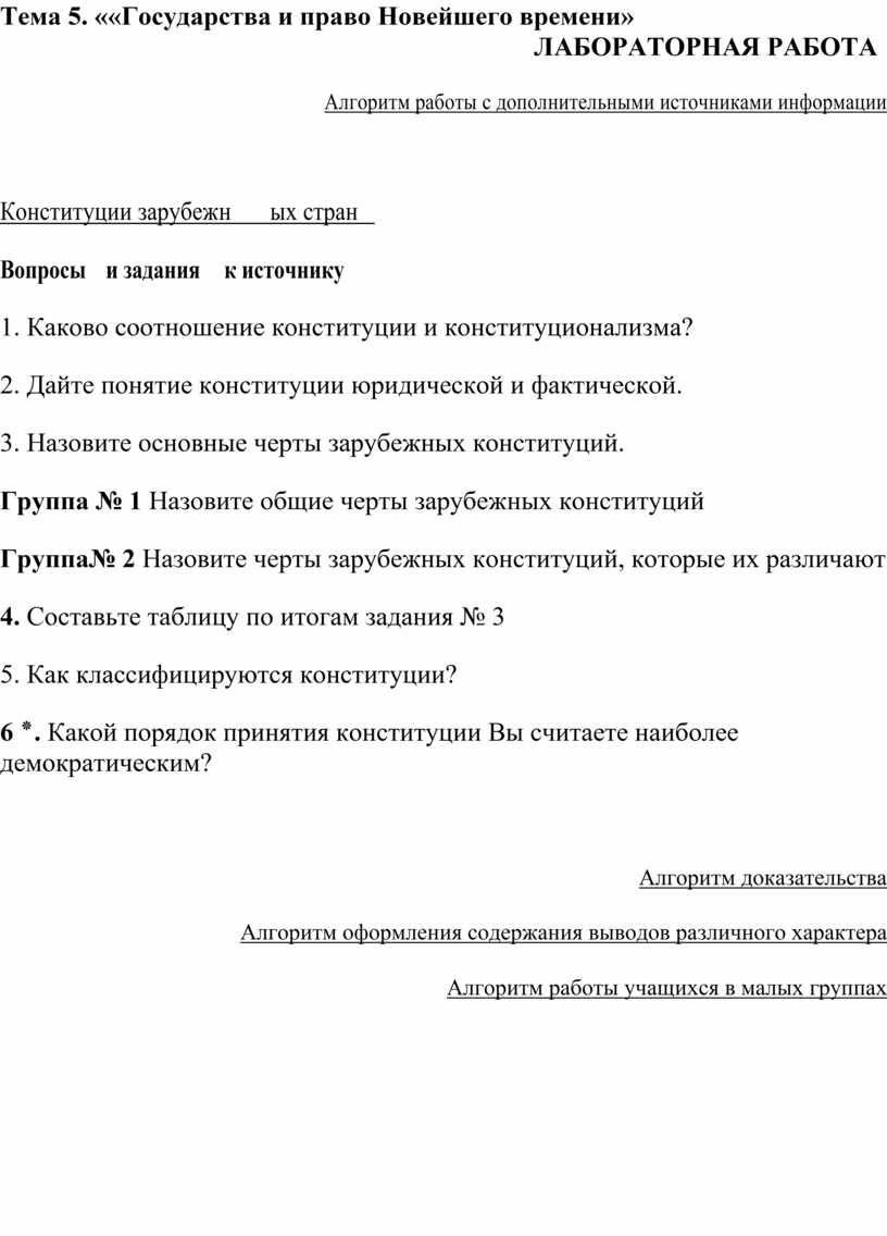Группа№ 2 Назовите черты зарубежных конституций, которые их различают