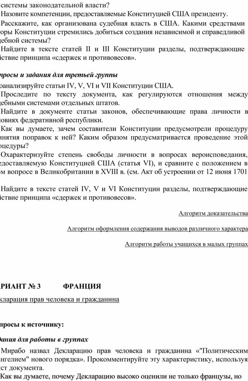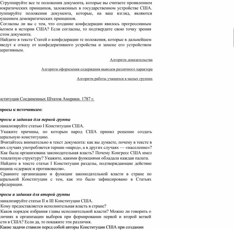 дарственном устройстве США. Сгруппируйте положения документа, которые, на ваш взгляд, являются нарушением демократических