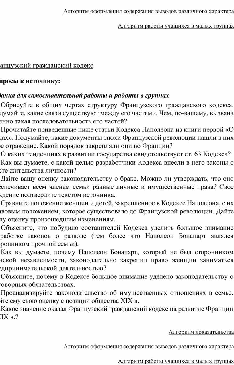 6. Сравните положение женщин и детей, закрепленное в Кодексе Наполеона, с их правовым положением, которое существовало до Французской революции. Дайте вашу оценку произошедшим изменениям.