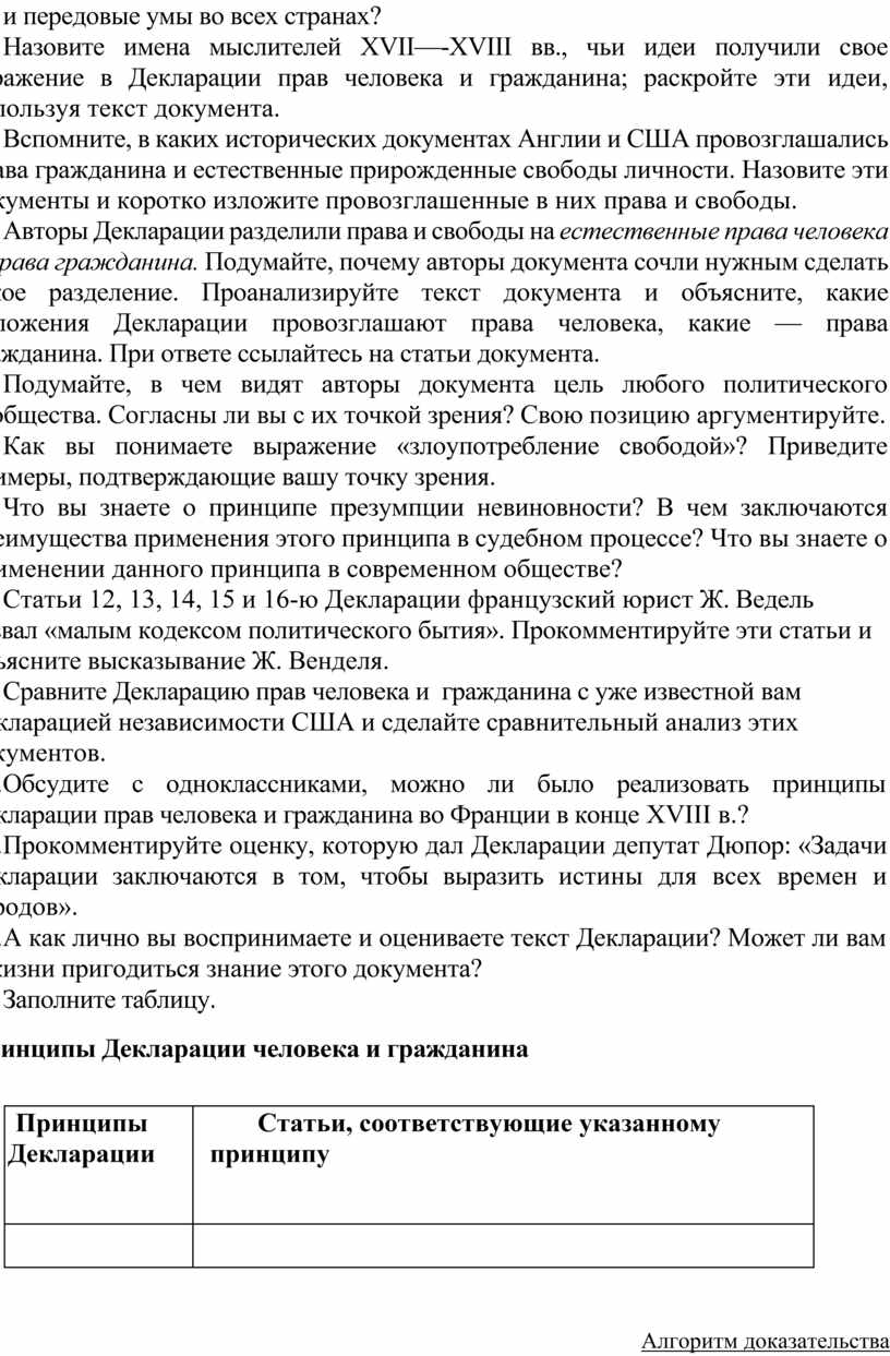 3. Назовите имена мыслителей XVII—-XVIII вв., чьи идеи получили свое отражение в Декларации прав человека и гражданина; раскройте эти идеи, используя текст документа.
