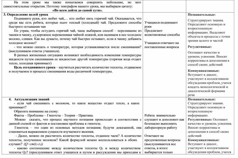 4. Актуализация знаний - если чай смешивать с молоком, то какое вещество отдает тепло, а какое |