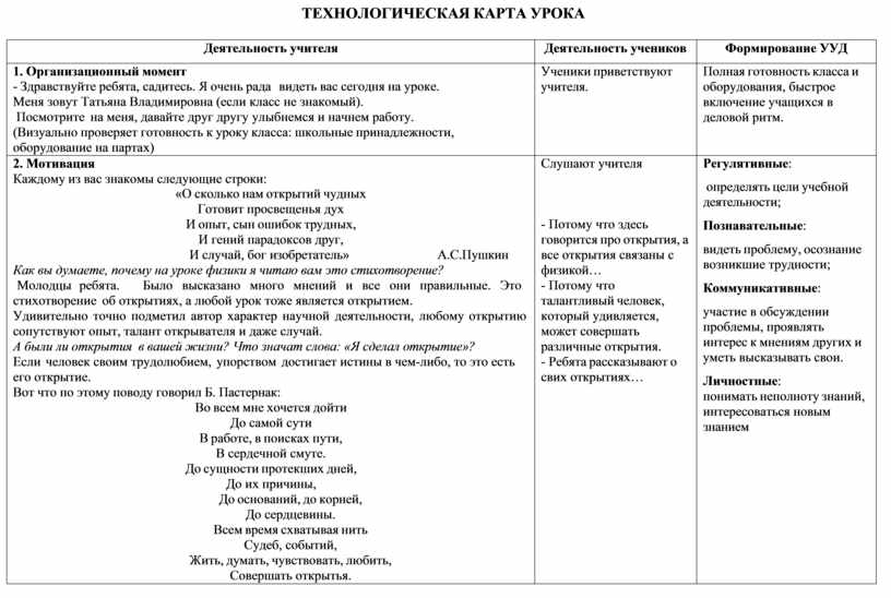 Полная готовность класса и оборудования, быстрое включение учащихся в деловой ритм. |