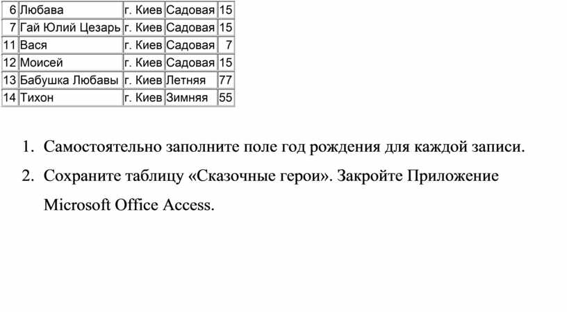 6. Самостоятельно заполните поле год рождения для каждой записи.