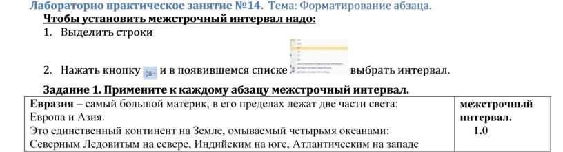 Лабораторно практическое занятие №14. Тема: Форматирование абзаца.