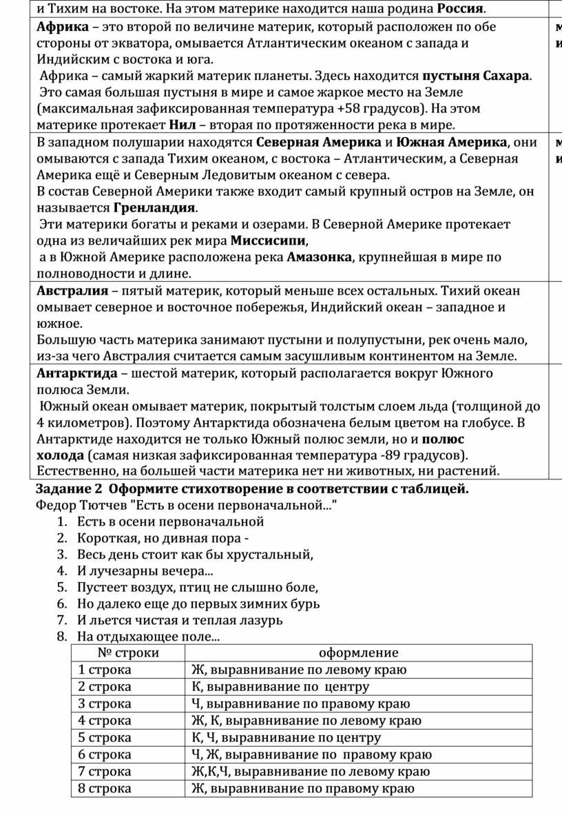 Задание 2 Оформите стихотворение в соответствии с таблицей.