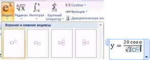 переходим к нижней части формулы. Нажмем кнопку Индекс, выберем Верхний индекс