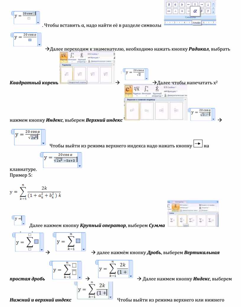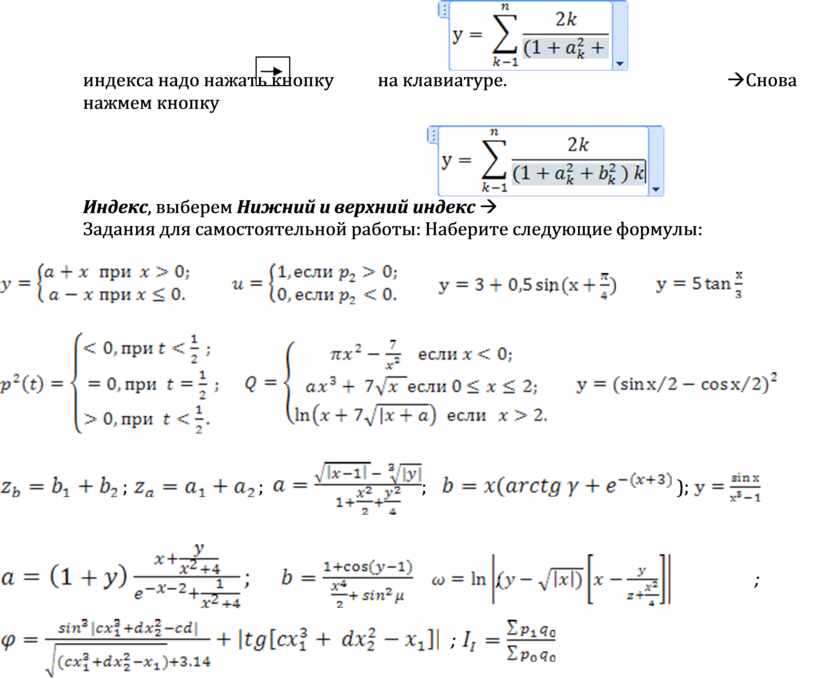 Задания для самостоятельной работы: Наберите следующие формулы: