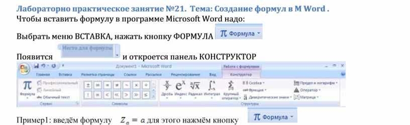 Лабораторно практическое занятие №21. Тема: Создание формул в M Word .
