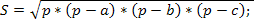 полупериметр, Р=(a+b+c) периметр .
