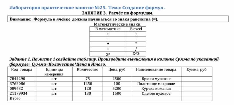 Лабораторно практическое занятие №25. Тема: Создание формул .