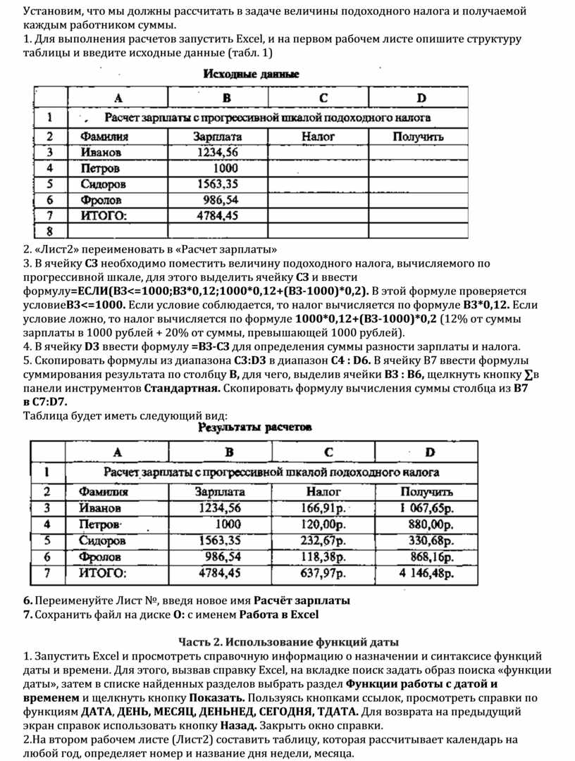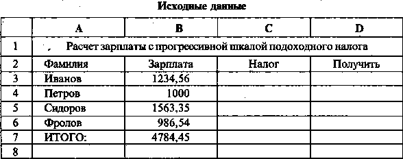 Установим, что мы должны рассчитать в задаче величины подоходного налога и получаемой каждым работником суммы.