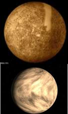 Венера - вторая по удаленности от Солнца планета. Венера не имеет естественных спутников. Температура + 737 К. Причиной столь высокой температуры на Венере является парниковый эффект, создаваемый плотной углекислотной атмосферой. Планета состоит преимущественно из камня и металла. |