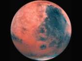 Марс – четвертая планета от Солнца. Марс преимущественно состоит из камня и металла. Поверхность Марса - пыле-песчаная пустыня с каменистыми россыпями, потухшими вулканами, кратерами, ветвящимися каньонами типа высохших русел рек. Известны два спутника Марса - Фобос и Деймос. Планету Марс в древности назвали в честь бога войны за кроваво- красный цвет. |